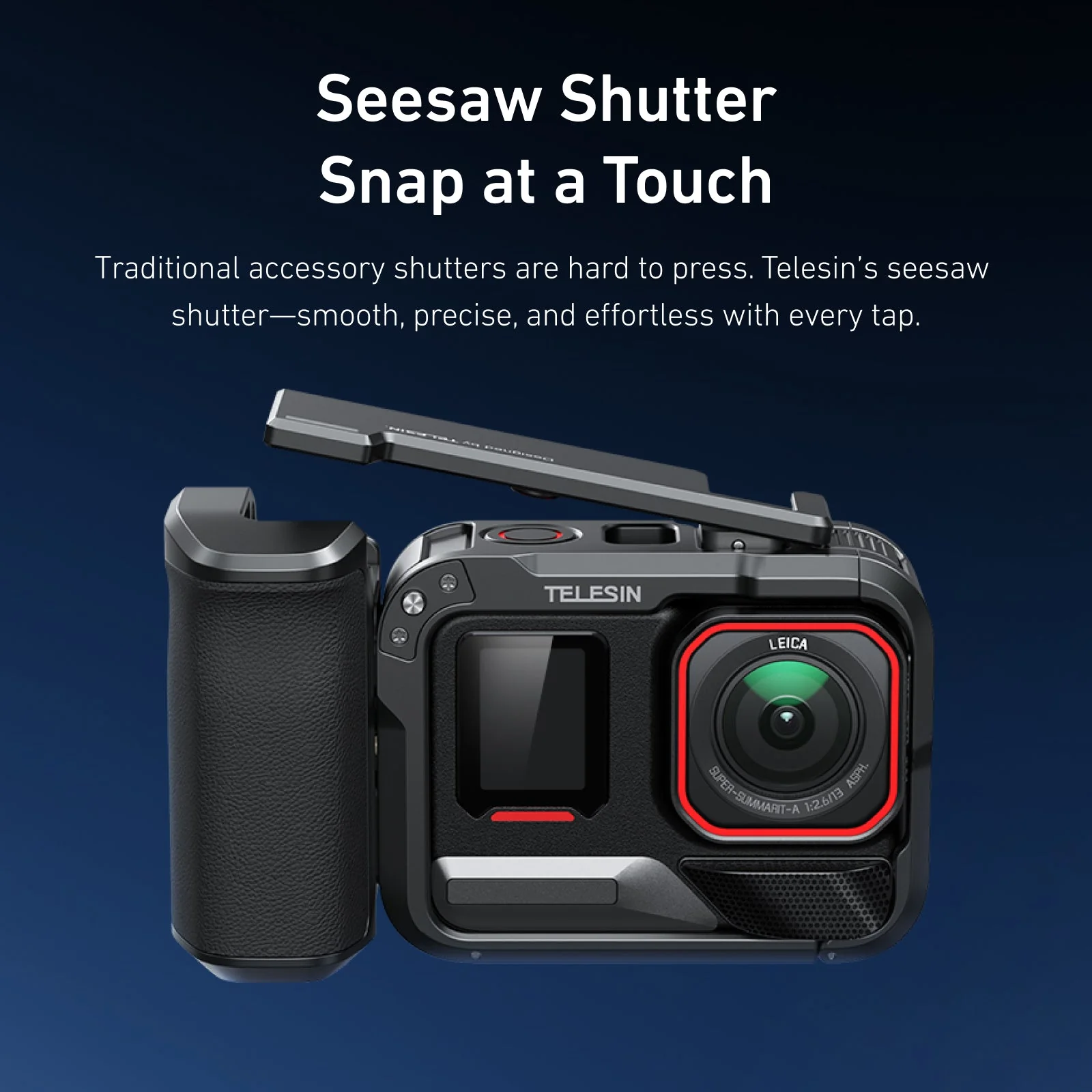 TELESIN’s seesaw shutter sits where your index finger naturally rests, delivering smooth, precise and effortless control with every tap.