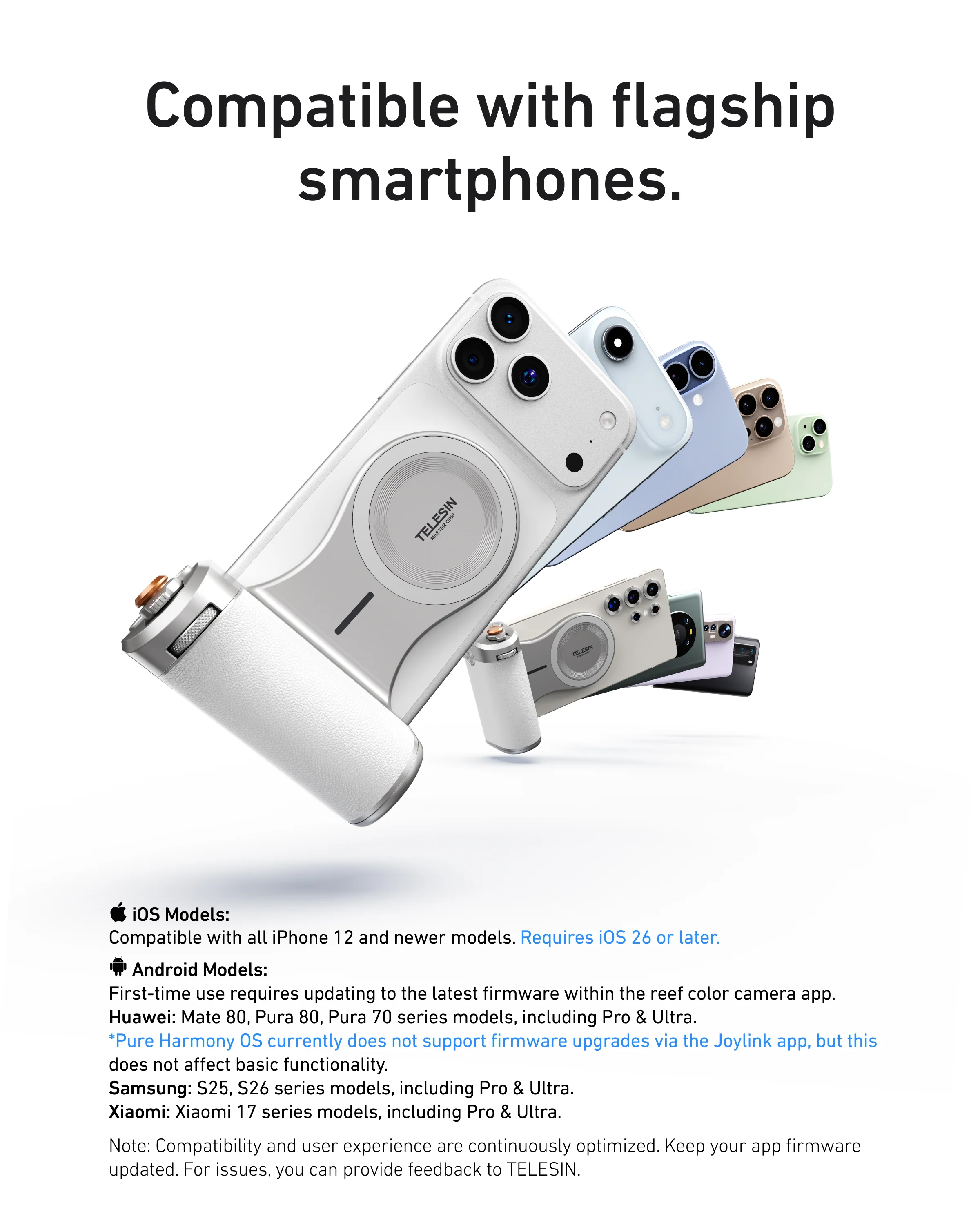 TELESIN has long been trusted in the action-camera and smartphone accessory world. Magnetic Pro Shot Imaging Camera Grip continues that as a 2026 flagship phone camera grip built from real creator feedback: